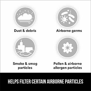 • HELPS FILTER CERTAIN AIRBORNE PARTICLES including dust & debris, smoke & smog particles, airborne germs, cough & sneeze debris and other particulate matter